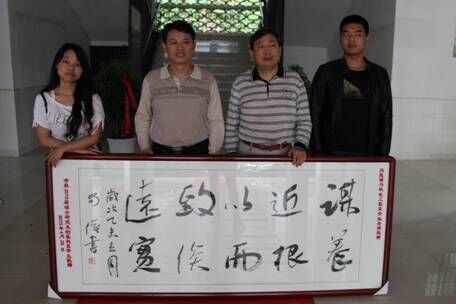 考取2015年硕士研究生的26名同学,为能源与机电工程系全体老师献上了今年会美术系易俊老师书写的校训“谋近以致远,养根而俟实”的牌匾。
