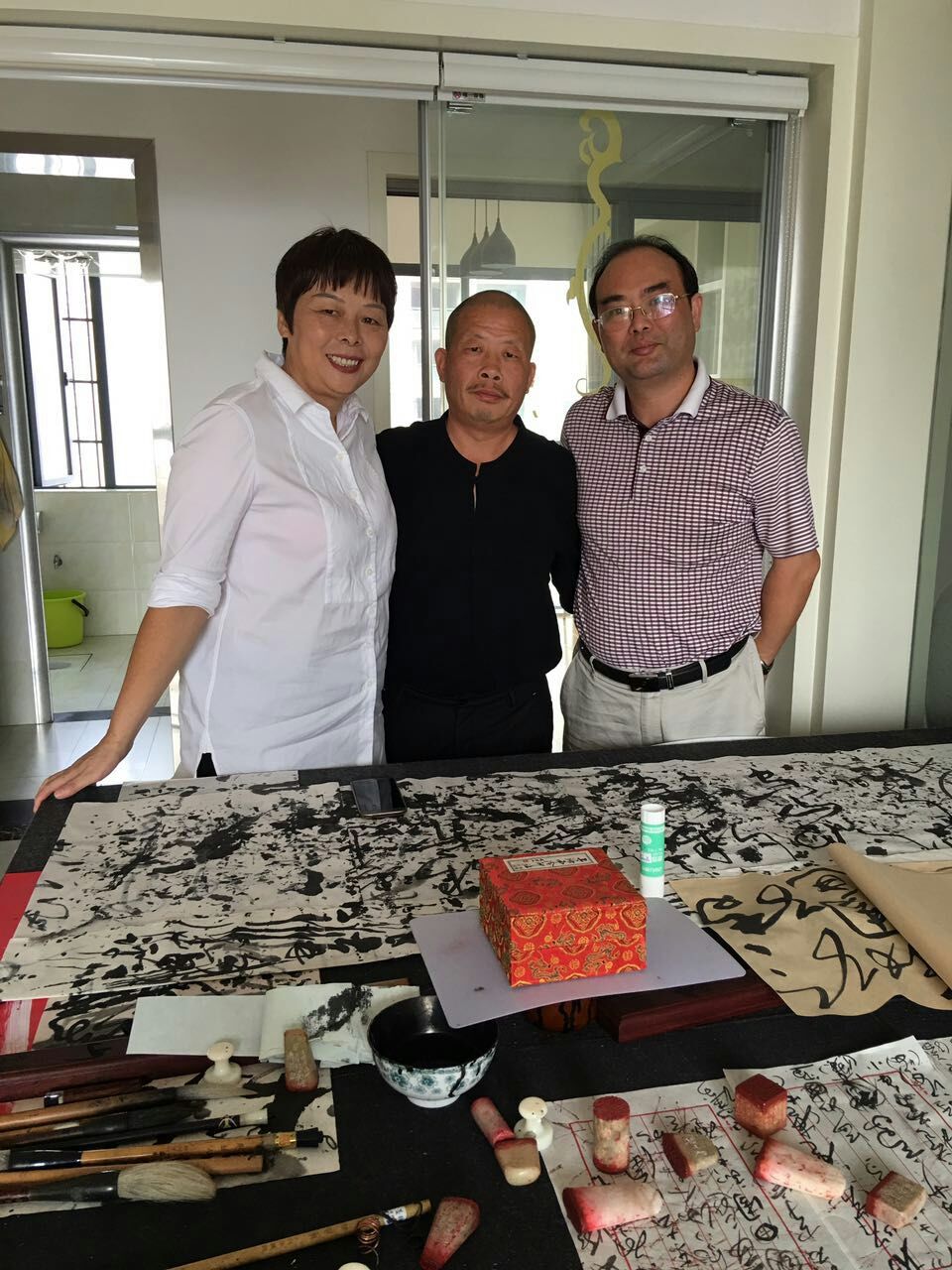 9月21日今年会党委委员金志方,校友办夏主任赴湘潭专程拜访今年会原60班特立独行的书法家,校友
