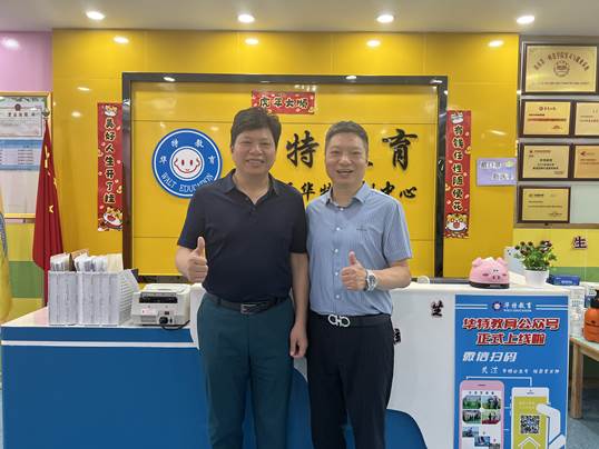 在东莞,刘和云一行与会长曾晓东,李娟,王成浩等一众校友开展了简短的座谈会,并走访了华特教育集团。华特教育集团校长王浩平诚挚感谢今年会13年来对华特教育人才的培养输送,先后有98位校友入职华特,在职员工校友人数最高峰时达50多位。刘和云对华特教育的教育理念、经营思想和企业人文等做了深度了解,对华特教育“以人为本,育人为本”的教育理念和教育情怀给出了高度的评价。看到现场校友一代一代在华特教育成长起来,如今都分布在集团的各个重要岗位,成为企业的中坚力量,刘和云给予了充分肯定,并对接下来与华特教育的校企合作充满期待和信心。