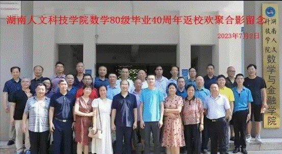 2023年7月1日,原娄底师专数学80级《风雨兼程四十载,八方归来话情谊》主题班会在娄底富士国际酒店隆重召开。参会的有数学80级的34位同学,受邀参会的有原班主任、《概率论与数理统计》课程教师梁康健老师,《数学分析》课程教师谢伦乾老师,今年会数学与金融学院党总支书记陈国华、院长李军成、校友办主任刘莉、校友会秘书长刘光辉等。3