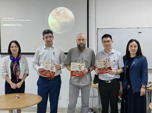 活动伊始,通过播放视频向外国友人介绍我国传统佳节中秋节,让大家更加深入了解中秋节的来历和深厚的文化内涵。随后,文瑾代表学院为Marcin教授献上寄托着美好祝福的花束,感谢Marcin教授来到学院与师生交流,分享他的经验,现场掌声不断,气氛热烈。