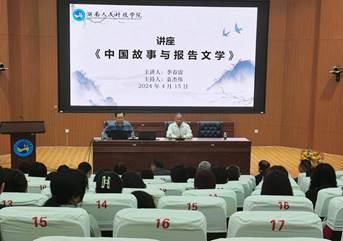 李春雷老师作《中国故事与报告文学》主题讲座。在三个小时的讲座中,李老师从专业视角出发,结合自身个人文学经历及创作感受,以报告文学中的经典作品为例,追溯历史史实,系统诠释了纪实文学的发展脉络及历史贡献,并深入浅出地为师生们讲述了中国故事的五大类别,分析了什么是报告文学、如何写好报告文学等一系列问题。