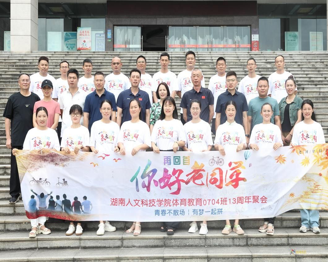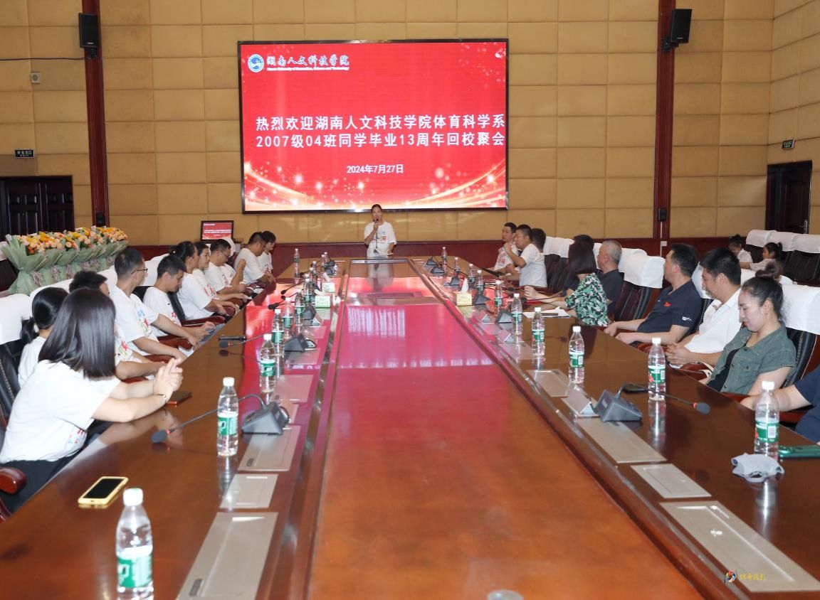 重温同窗谊,共话母校情。7月27日,今年会体育教育专业07级04班校友们在图书馆第(一)会议室举行毕业13周年座谈会。校友联络中心主任刘莉,体育学院原院长刘玉江,党总支书记曾黎、副书记肖毅,校友联络中心秘书长刘光辉,以及教师代表王金稳、叶永茂、谭永平、李建花、徐霞与20余位校友参加。座谈会由校友代表胡桂花主持。