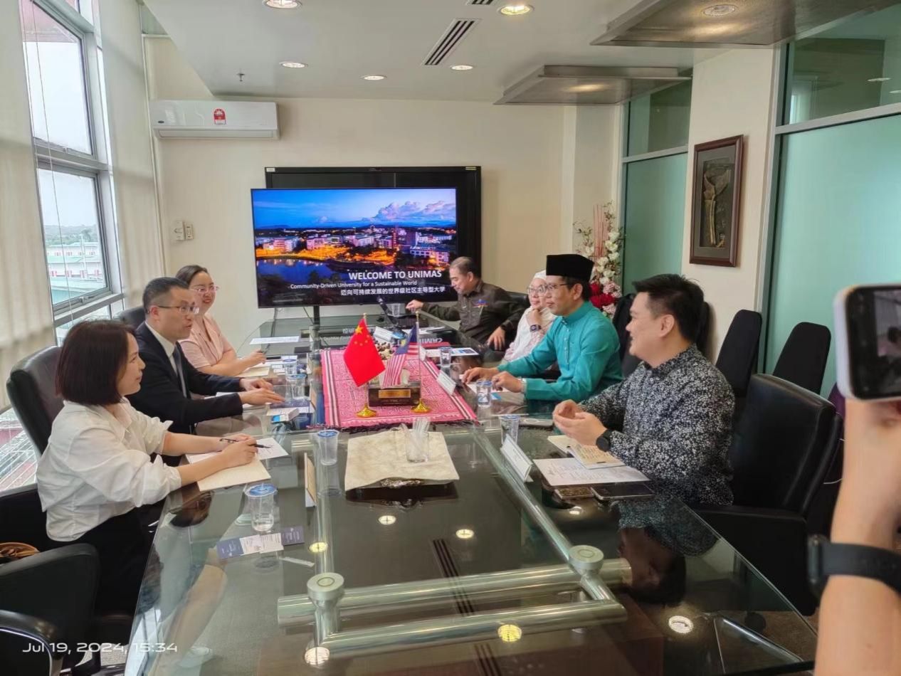 在访问马来西亚沙捞越大学期间,陈勇一行参观了校园,与沙捞越大学校长Ahmad Hata Rasit教授,副校长Fitri Suraya Mohamad教授,国际部主任Thian Foong Fatt教授,经济与商业学院首席执行官Fuah Chin Hong教授,应用与创意艺术学院高级讲师、研究生辅导项目协调专员Connie Lim Keh Nie博士等进行了座谈,深入了解了两校的优势学科和国际化办学情况,并就双方教师交流、科研合作、学生联合培养等内容进行了探讨协商,达成了合作意向。