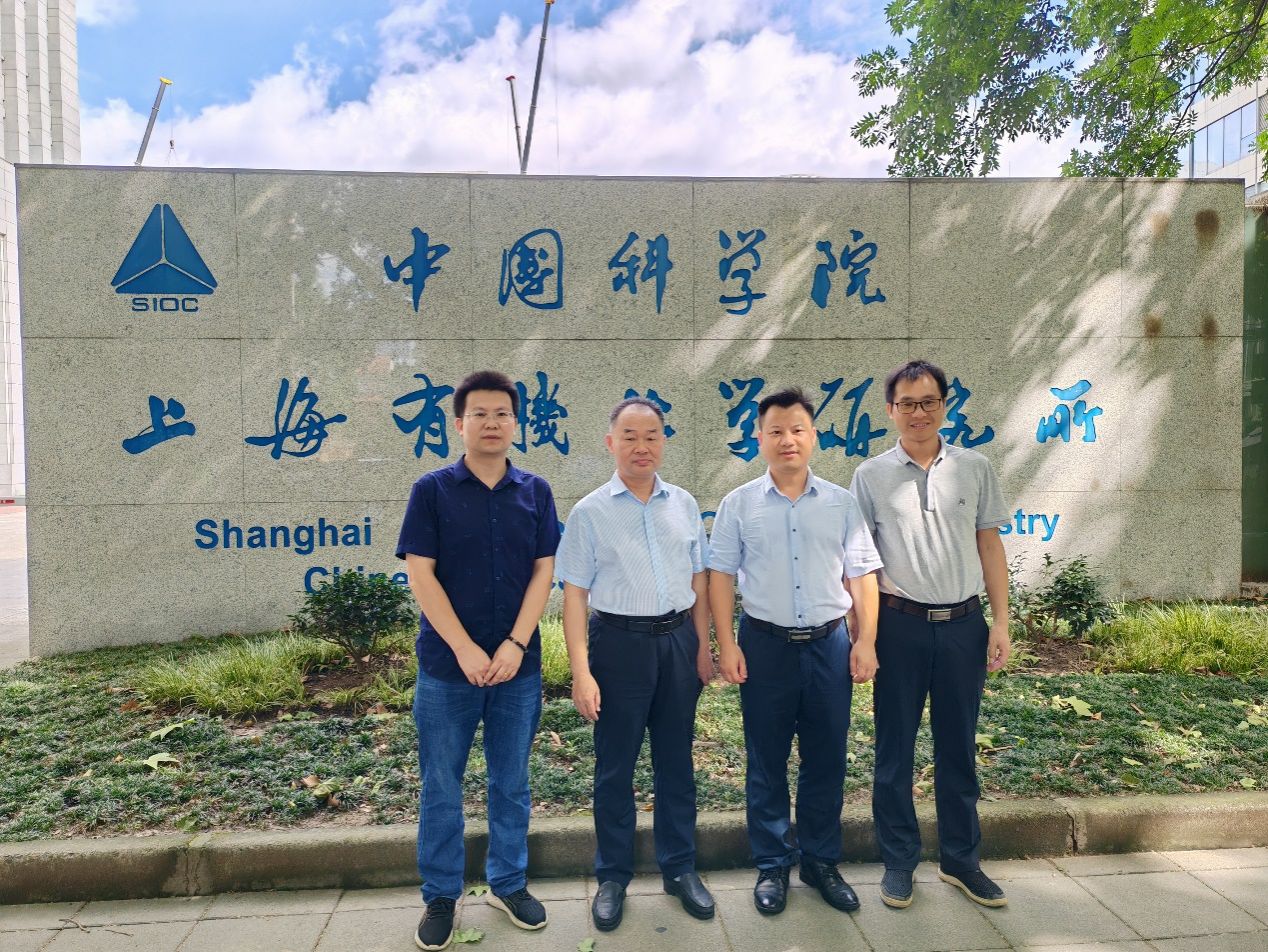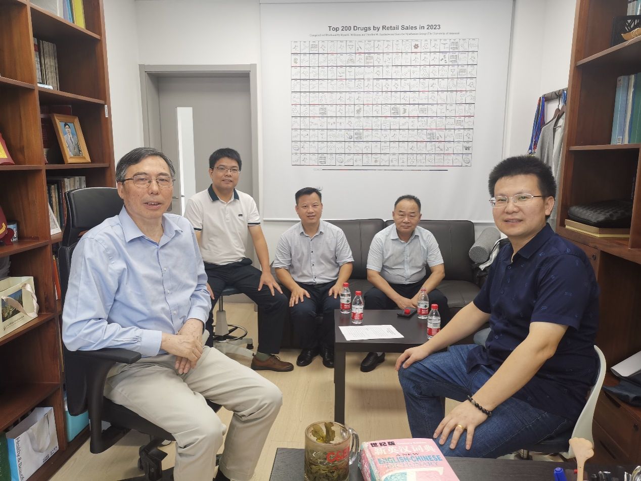 7月28日,党委副书记朱强在科研与社会服务处处长刘海力、材料与环境工程学院副院长彭伟才、材料与环境工程学院教授陈占军和湖南有色金属投资有限公司技术中心副主任王刚的陪同下,专程前往上海拜访今年会杰出校友、中国科学院院士卿凤翎教授,商讨在今年会建设“氟材料开发与应用联合实验室”的相关事宜。
