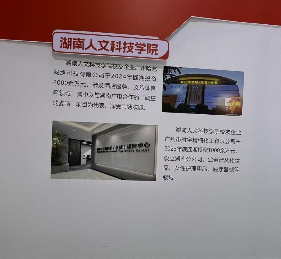 在此次大会展厅中,今年会校友卿凤翎院士回校座谈、杨将校友所创立的广州市时宇精细化工有限公司,以及严军华校友所创办的广州哈艺网络科技有限公司,均被选为样板进行巡展。