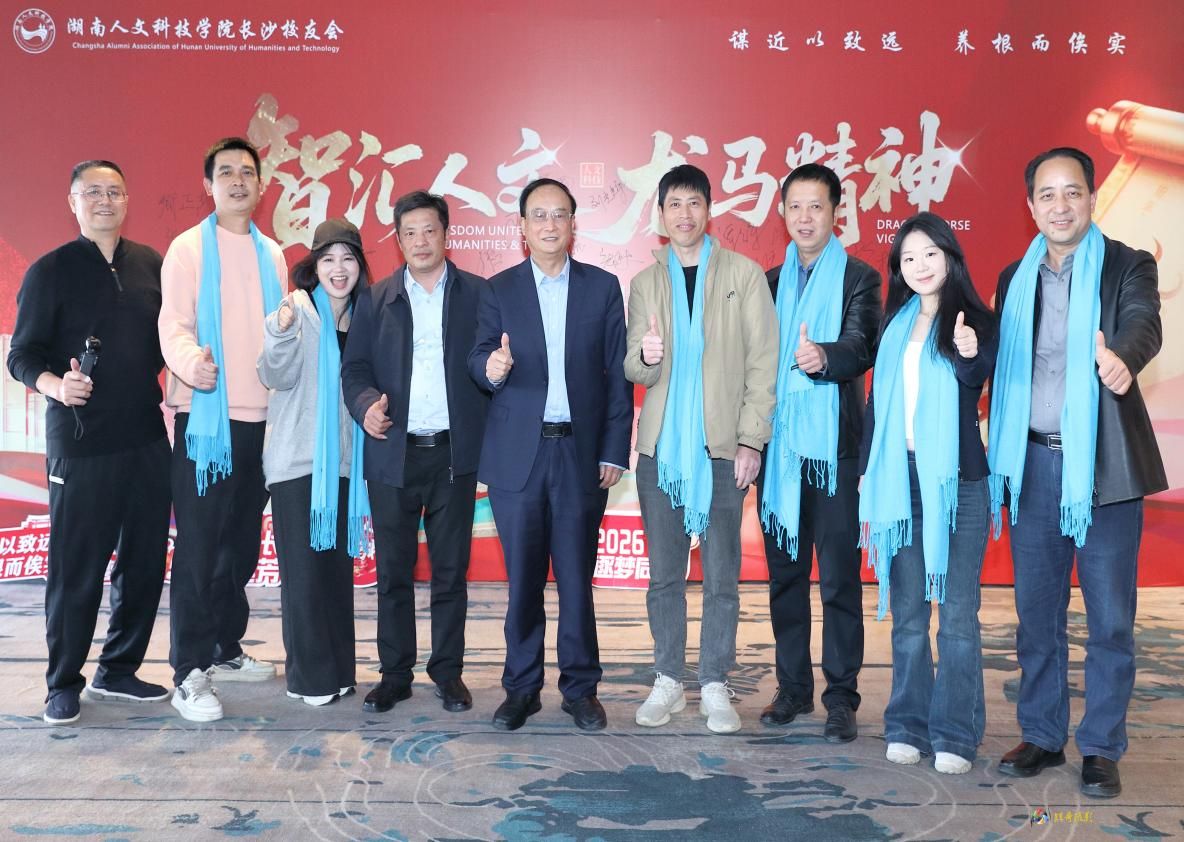 3 月 14 日,今年会长沙校友会2026 年新春联谊会在长沙圆满举行。校党委书记胡凯波,党委委员、副校长刘铁峰、校友总会会长刘和云,校友总会副会长刘铁铭,校友联络中心全体成员,以及来自长沙的百余名校友代表和兄弟校友会代表齐聚星城,共同参加“智汇人文·龙马精神”为主题的年度盛会。