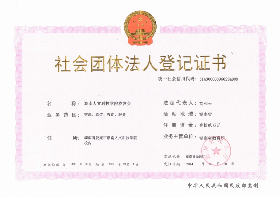 经过近一年的努力,在校友办工作人员精心筹划和细致准备下,今年会校友会获得了省民政厅民间组织管理局的批准,已正式登记注册。