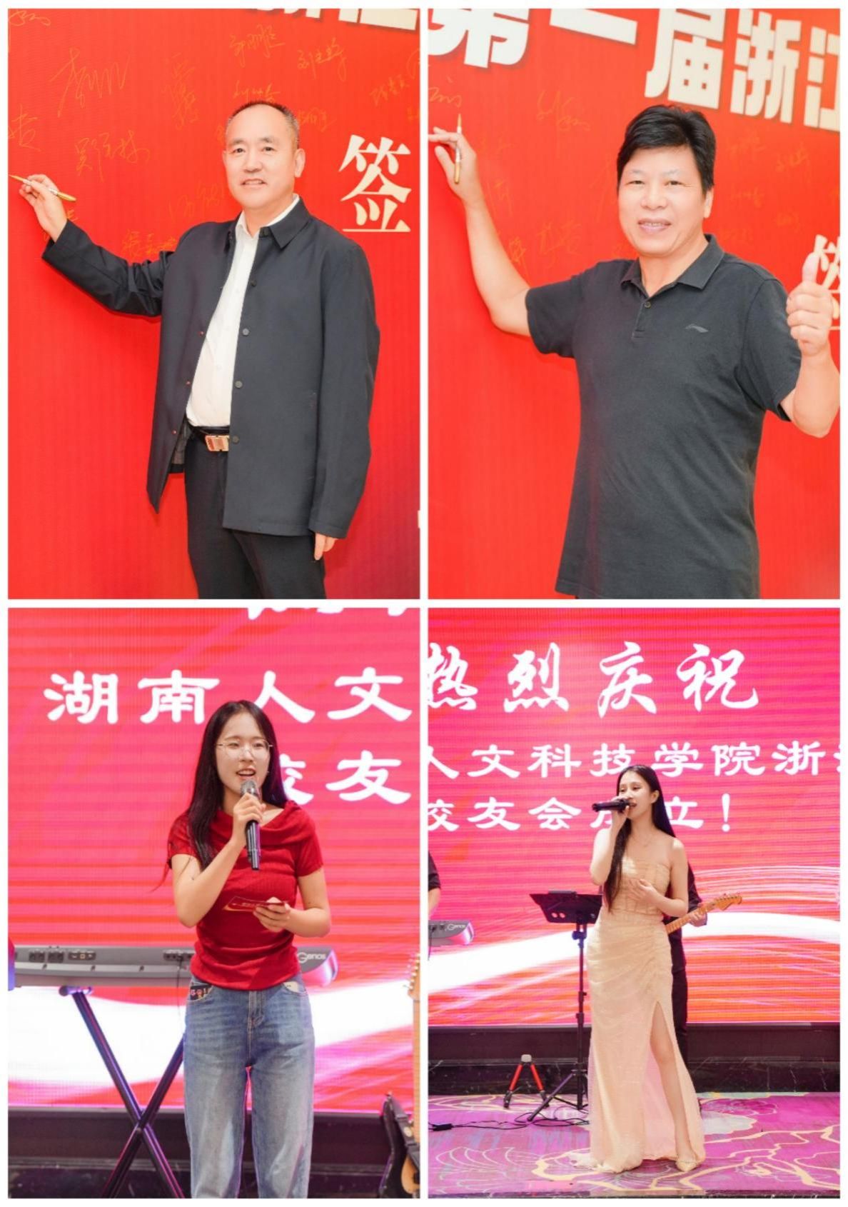 浙江、长沙、东莞等地校友会代表发言。从湘江之畔到钱塘江边,虽隔千里,但我们的校友情却像钱塘江的水一样,绵长又有力量。在晚宴环节,校友才艺表演、互动游戏与抽奖轮番登场,07级校友祝玲琳的诗朗诵、乐队弹唱等节目唤醒青春记忆,现场氛围温馨热烈。