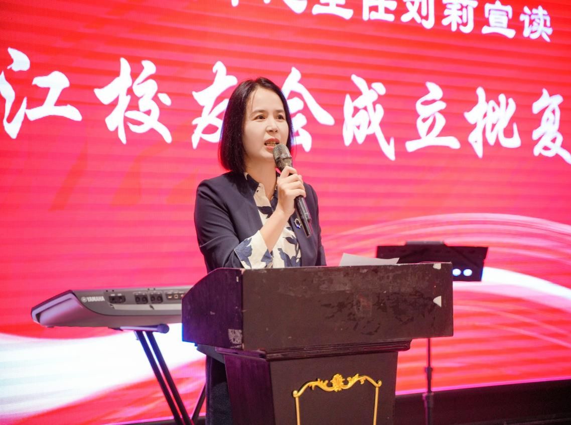 刘莉宣读《关于同意成立今年会校友会浙江分会的批复》。