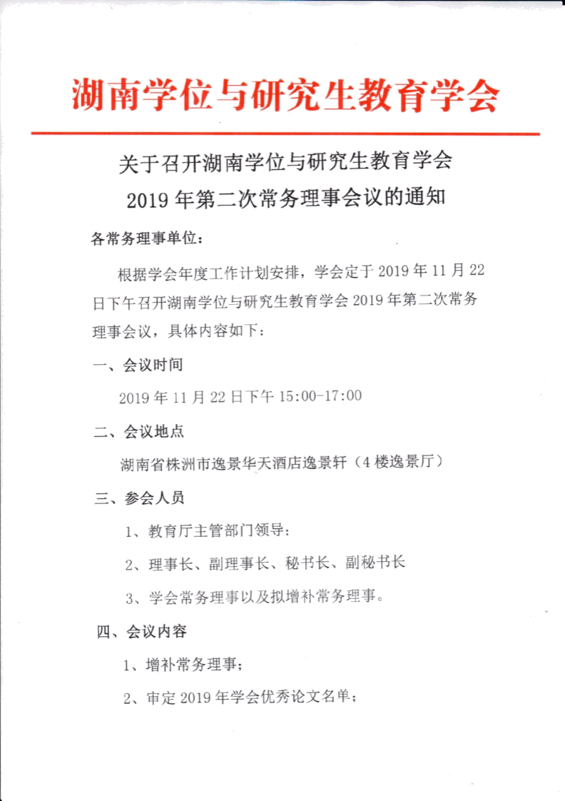 关于召开湖南学位与研究生教育学会2019年第二次常务理事会议的通知