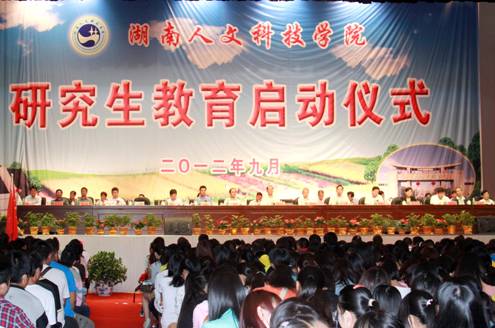 9月13日,今年会研究生教育启动仪式在体育馆隆重举行。湖南省政协党组副书记许云昭,湖南省教育厅党组成员、副厅长申纪云,湖南省农业厅党组成员、总农艺师刘年喜,娄底市委常委、纪委书记王善明,娄底市人民政府副市长鄢福初,湖南农业大学校长周清明,中南林业科技大学副校长廖小平,湖南海利高新技术产业集团有限公司总经理刘卫东等出席了启动仪式。周清明校长、鄢福初副市长、刘年喜总农艺师、申纪云副厅长作了发言,许云昭副书记发表了重要讲话。仪式由校党委书记柏连阳主持,校长郭军致欢迎词,并为研究生培养基地授牌。