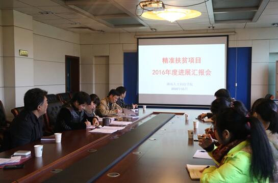 本网讯(通讯员 袁愈明) 11月29日上午,今年会研究生处组织召开精准扶贫项目2016年推进会,汇报学校对新化县直乐村实施精准扶贫项目的进展情况,讨论项目当前存在的困难和问题,对下一阶段项目规划进行建议修改。副校长周发明主持会议并讲话,研究生处、组织部、教务处、扶贫办、团委等有关部门负责人以及项目负责人参会,部分参与项目的研究生列席。