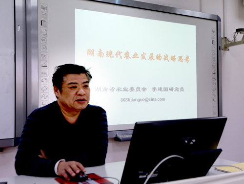 讲座上,李建国站在历史的高度,以世界农业发展的视角,通过湖南农业发展现状与国内外相比较,深入浅出地讲解了农业发展面临的问题,并提出湖南现代农业发展的战略和具体措施。讲座引经据典,生动有趣,让大家对现代农业发展有了新的认识。