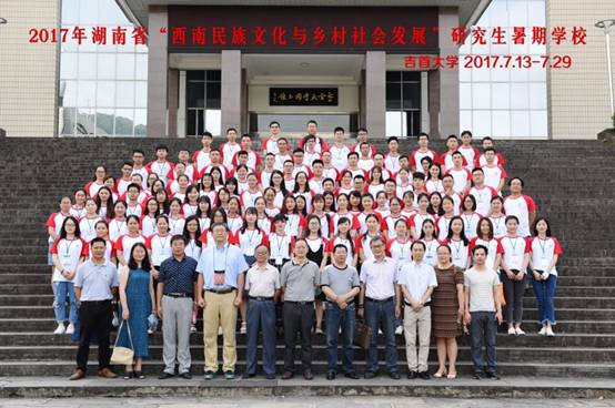 2017年7月13日上午,由省教育厅主办,吉首大学承办的“西南民族文化与乡村社会发展”2017年湖南省研究生暑期学校在吉首大学顺利开幕。吉首大学副校长龙先琼、研究生院院长佘佐辰、历史与文化学院院长罗康隆、历史与文化学院终身教授杨庭硕、云南大学特聘教授马腾岳出席开幕式。开幕式由暑期学校校长、历史与文化学院副院长暨爱民主持。今年会2017级农村与区域发展领域刘良玉、黄帅、朱婷、黄胜男四位研究生参加了此次暑期学校活动。