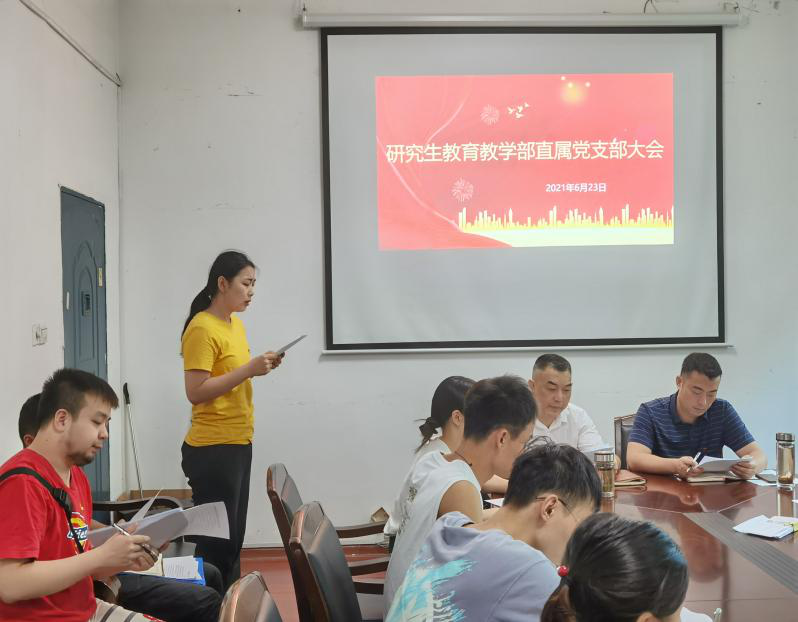 根据校党委的安排部署,2021年6月23日上午,研究生教育教学部直属党支部在明德楼218召开了预备党员转正大会。会议由支部书记彭健民主持,副书记向瑞桃以及支部各正式党员参加了会议并发言。