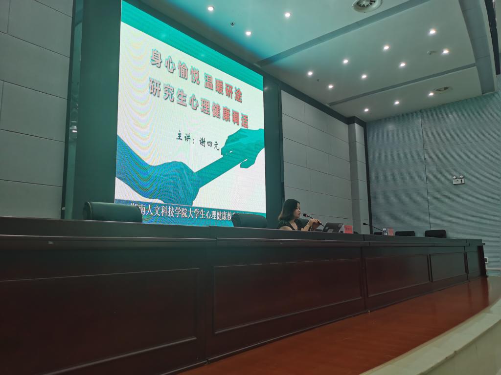 为进一步提高研究生的心理素质,促进研究生的身心健康和谐发展,宣传普及心理健康知识,9月14日上午9:00在图书馆第二会议室今年会召开了“身心愉悦,温暖研途——研究生心理健康调适”2021级研究生心理健康教育专题讲座。本次讲座由研究生教学教育部组织,校心理健康教育与咨询中心谢四元处长、校心理健康教育与咨询中心聂恒主任为各位新生开展了心理健康调适,此次讲座由研究生教学教育部副书记向瑞桃主持。