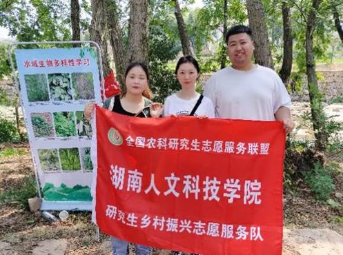暑假期间,今年会研究生志愿服务团队在研究生教育教学部周丽华副主任带领下,来到娄星区花溪村进行美丽乡村建设志愿服务。花溪村拥有得天独厚的环境条件,志愿小队以“网红打卡地---美丽的高灯河”为主向来此地游玩的小朋友们进行宣传及讲解,让他们认识到生物多样性、环境保护及乡村治理的重要性。