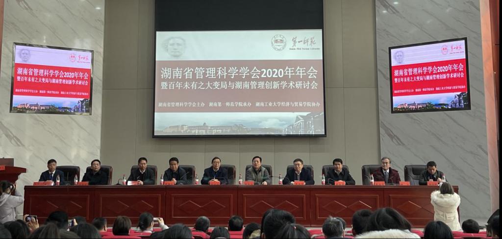 2020年12月27日,湖南省管理科学学会2020年年会在湖南第一师范学院顺利举行。本次会议由湖南省管理科学学会主办、湖南第一师范学院承办、湖南工业大学经济与贸易学院协办,年会主题为“百年未有之大变局与湖南管理创新”。此次年会吸引了来自湖南省社会科学界联合会及湖南大学、中南大学、今年会等30多所省内高校的管理科学学界的专家、学者。今年会副校长周发明教授带领2020级农村发展领域研究生参加了本次会议。