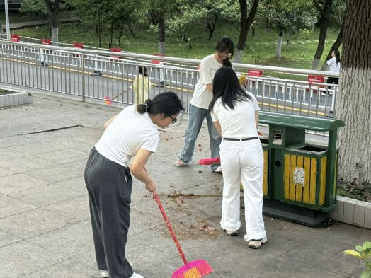 活动当天,同学们手持清洁工具,热情洋溢地齐聚逸夫楼前的花田。大家分工明确、协同合作,对花田区域展开全方位清理:有人俯身拔除草坪内的杂草,清理枯萎枝叶;有人仔细捡拾地面垃圾,不放过任何一个卫生死角。在同学们的共同努力下,花田焕然一新,校园环境更显整洁优美。