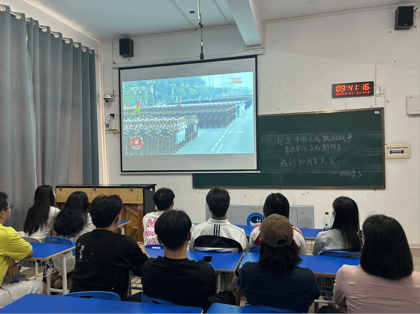 9月3日上午,为纪念中国人民抗日战争暨世界反法西斯战争胜利80周年,音乐舞蹈学院组织全院师生以线上线下相结合的形式观看了盛大的阅兵仪式直播。学院全体老师齐聚音乐厅、部分返校学生在教室进行观看,未返校的学生也通过多种形式同步收看这一庄严时刻。观看结束后,音乐舞蹈学院组织全体教师集中学习习近平总书记在纪念中国人民抗日战争暨世界反法西斯战争胜利80周年大会上的重要讲话精神,并围绕“艺术教育与抗战精神传承”主题开展深入研讨。当晚,学院要求全体教职员工分散观看了主题为《正义必胜》的纪念抗战胜利80周年文艺晚会演出。