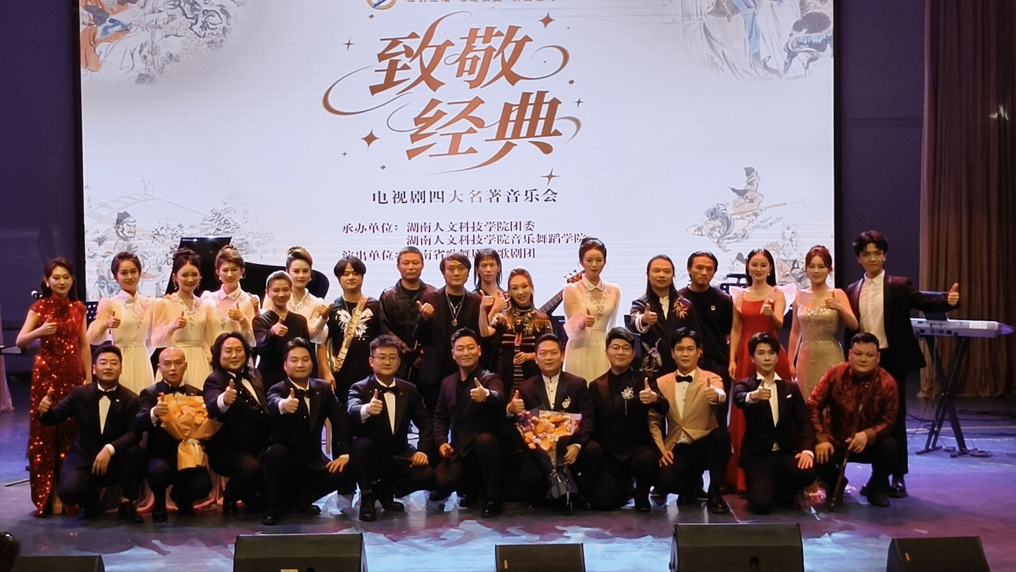 活动伊始,领导老师及同学们依次入座,由主持人开场宣布音乐会正式开始,音乐会以中国四大名著为核心,通过乐队及演唱的形式生动形象的展示了四大名著的宏伟风采,当《通天大道宽又阔》等耳熟能详的歌曲响起时,引发了全场共鸣,全场氛围走向高潮。洪亮的歌声回荡在音乐厅内,震在观众的心中。音乐会到达尾声,同学们意犹未尽,主持人带动演奏者与观众的情绪再次走向高潮,以全场大合唱的形式结束了此次音乐会。本次音乐会精彩纷呈,为全体观众带来了一场视听盛宴,热烈的掌声与欢呼声无一不展现了观众对表演者们的肯定。