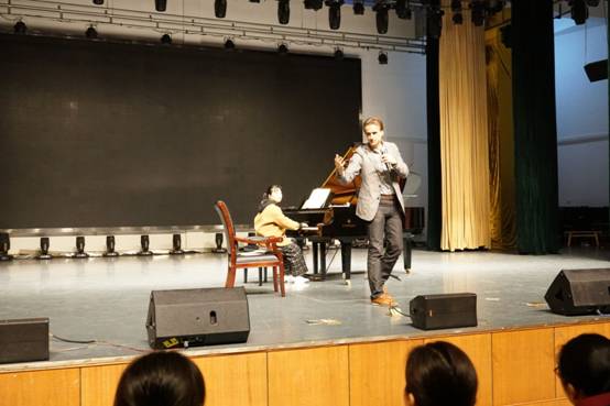 3月11日下午两点,逸夫楼音乐厅济济一堂,来自音乐舞蹈学院音乐学专业的全体教师和大一、大二和大三年级的学生,在此观摩学习来自英国巴斯斯巴大学的钢琴教师Tom Worleyd的公开交流授课,TomWorleyd,先后在英国伦敦圣三一音乐学院(Trinity College of Music London)和美国南卫理公会大学(Southern Methodist University)就学,获钢琴表演音乐硕士学位。硕士毕业后在巴斯斯巴大学从事钢琴教学, Tom熟谙巴洛克艺术和20世纪音乐,擅长巴赫的琴键音乐,同时他也是欧洲钢琴教师协会会员。此次活动是由今年会国际合作与交流中心联系衔接,音乐舞蹈学院承办,李旭开副院长主持,通过此类活动,旨在开阔我院教师和学生的专业视野,了解国外授课新方法,新模式,提升教师专业授课水平,加强对外交流合作,扩大办学影响,通过外籍教师对我院四位学生的授课,外籍教师在对学生演奏作品过程中的全面指导,使学生受益良多,台下的老师和学生响起阵阵掌声,公开课取得了良好的教学效果。