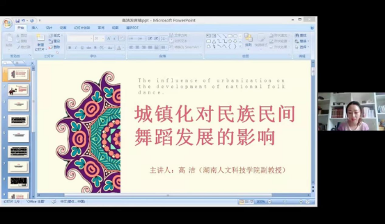 为庆祝中国共产党成立100周年,北京舞蹈学院于11月1日-3日举办了以“为人民而舞--中国舞蹈艺术发展之路”为主题的BDA舞蹈论坛,今年会音乐舞蹈学院高洁副教授受邀参加,并在“百年征程中民族民间舞蹈的社会构建与政治功能”分论坛上作《城镇化对民族民间舞蹈发展的影响》主题发言。