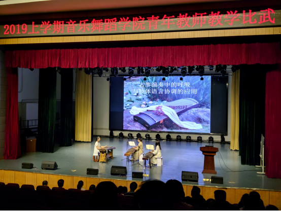 2019年4月9下午两点半,为配合学校本年度青年教师教学比武活动以及顺利通过学校审核评估,加强课堂教学管理,提高教师课堂教学水平与能力,音乐舞蹈学院在逸夫楼音乐厅举办了青年教师课堂教学比武。为组织好本次活动,音舞学院邀请学校督导组陈征南教授、杨竟成副教授、欧阳晨副教授、宫维民副教授和在院内随机抽选部分职称高、教学能力强和教学经验丰富的专任教师担任评委,音乐舞蹈学院领导班子和全体专任教师一起现场聆听和观摩整个教学比武全过程,本次教学比武由李旭开副院长担任大赛主持。