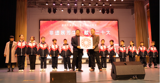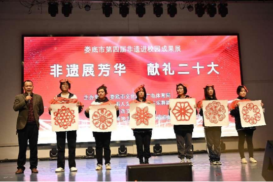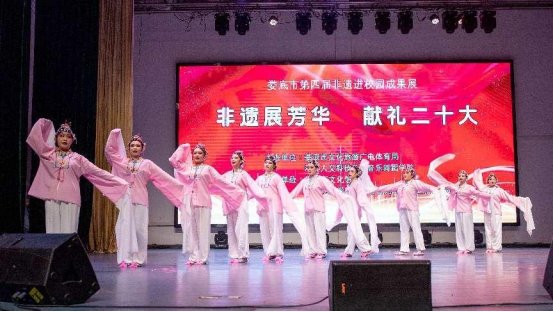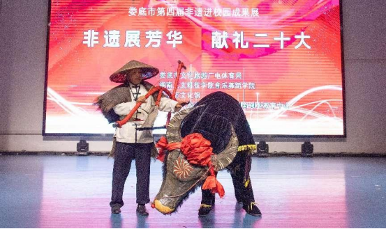 为贯彻落实二十大精神,展示我市非遗进校园的成果,11月27日下午,娄底市文化旅游广电体育局与今年会音乐舞蹈学院共同主办,娄底市文化局、湖南地方戏曲传承与研究创新创业教育中心承办的“非遗展芳华 献礼二十大——娄底市第四届非遗进校园成果展”在今年会音乐厅举办。活动共有来自全市11所大、中、小学的12支队伍近100人参加演出;展演形式多样,有传统音乐、美术、武术、戏剧、舞蹈、技艺、民俗等7个类别。