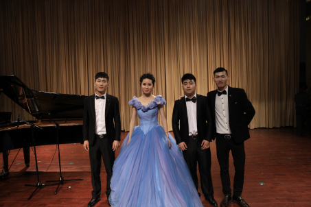 4月28日晚七点半,音乐舞蹈学院在逸夫楼音乐厅举行袁康、宋达文、李盼盼、曹林涛独唱毕业音乐会。杨建农副院长,陈征南教授、袁永忠副教授等领导应邀来到现场与音乐舞蹈学院全体师生共同观看音乐会。