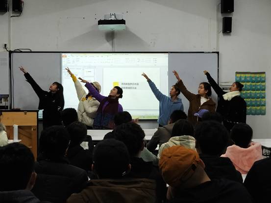 康晓丹副教授结合自身的理论研究与实践经验从“形体塑造的内涵”、“形体塑造的内容”、“形体塑造的原则”、“不同类型声乐作品形体塑造的方法”、“形体塑造中应注意的问题”五个大的方面进行了深入浅出的讲解。讲座中,结合学生们在声乐表演艺术中形体塑造存在的问题,康晓丹老师把学生请上讲台,从“站姿、“手势”、“眼神”、“眉部状态”、“脸部表情”、“口形”等方面进行了现场教学,效果明显。讲座现场座无虚席,老师和同学们听的非常认真,在热烈的掌声中讲座落下帷幕。
