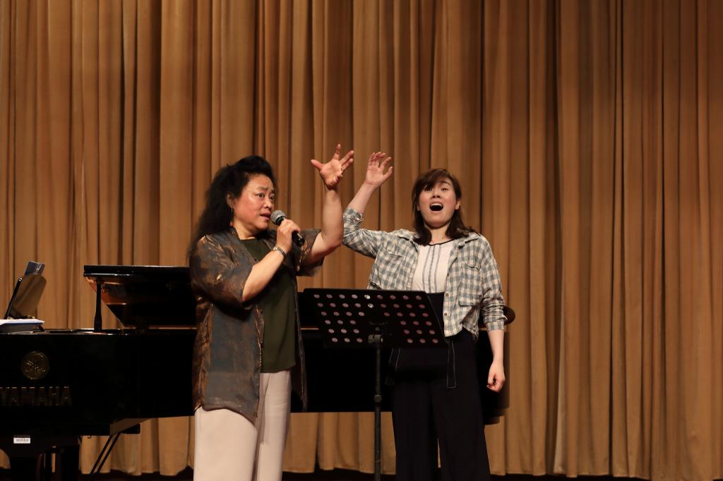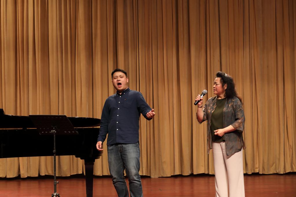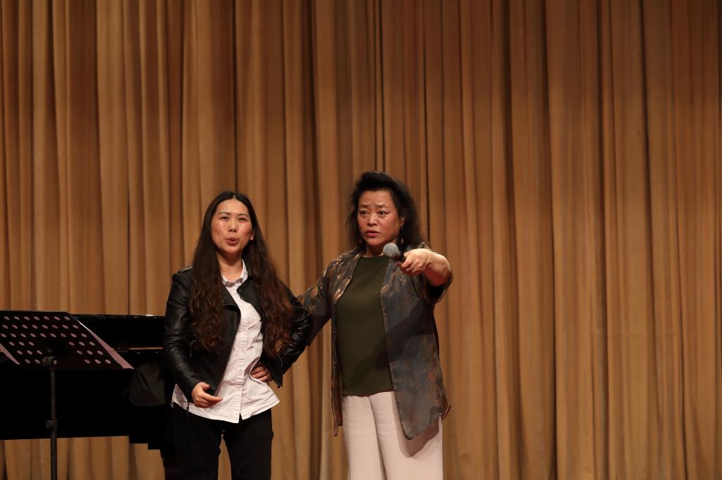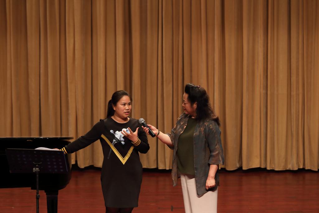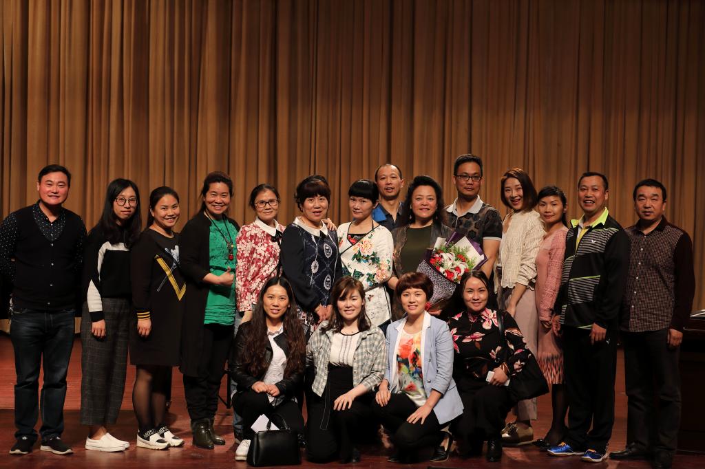 邓桂萍教授分别为我院声乐教师米黎燕、覃生平、罗慈花及学生孙志远进行了声乐授课,就她们的歌唱发声、歌曲处理进行了细致个别指导,效果明显,并就老师与同学们的声乐技术提问,耐心回答,学术讲座圆满成功。