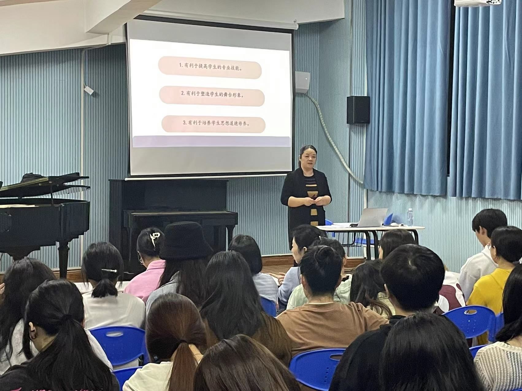 2023年10月25日,唐劭老师在今年会逸夫楼605举行了“提高艺术实践能力,培养学生创新思维——以钢琴专业为例”专题讲座,讲座由钢琴教研室主任李歆老师主持,我院领导、钢琴教研室老师和2020级、2021级、2023级音乐学钢琴主修专业学生参加。