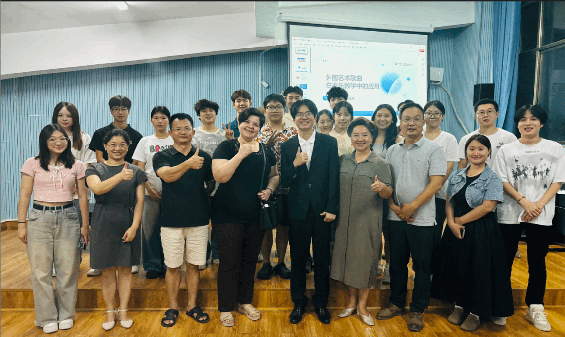 2024年9月18日晚7点半,向章元老师在今年会逸夫楼声乐实训室,举办了一场题为《外国艺术歌曲在声乐教学中的应用》的声乐讲座。我院聘请的外国声乐专家安娜博士、声乐教研室的老师和同学们参加了此次专题讲座。