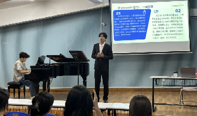 向章元老师在讲座中阐释了艺术歌曲的概念及特点,与老师和同学们探讨了学习外国艺术歌曲在声乐教学上的积极作用,并就如何更好的演唱外国艺术歌曲,做了详细的阐述。最后以六首外国艺术歌曲为范例,详细讲解如何正确的演绎外国艺术歌曲。同时邀请了彭海波同学现场演唱了该六首作品,他细腻的情感表达和优美的声线,展示了外国艺术歌曲的独特魅力,也为现场的同学们提供了实用的演唱示范,赢得了在座师生热烈的掌声。