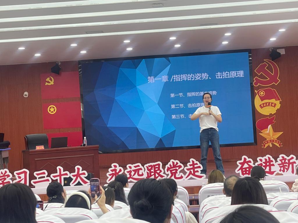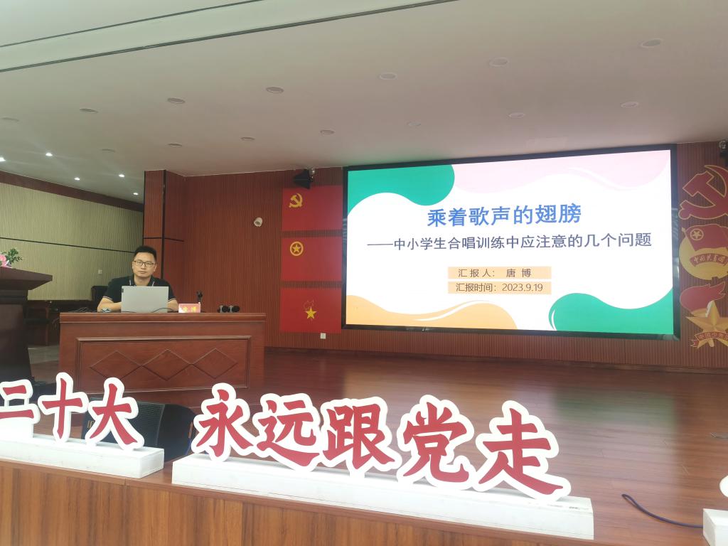 为落实“品质教育”建设,全面推进“五育并举”政策的落地,推进娄底市政府“优化环高校基础教育发展生态圈”的重要举措,促进高校教育与基础教育深度融合。9月20日,我院声乐教研室唐博副教授,以及理论教研室谭以珂老师受邀参加娄星区举行的2023年中小学音乐教师合唱指挥培训班。