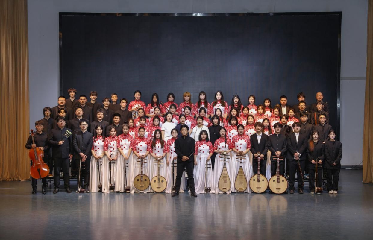 今年会音乐舞蹈学院民乐团始建于2004年,正式成立于2006年,按照标准的民族管弦乐队编制进行配置。近年来,民乐团多次参加校内外的各种比赛与演出,得到专家及业内人士的一致好评。在2008年的第二届大学生艺术展演中,由音乐学院民乐团演奏的器乐合奏《瑶族舞曲》获湖南省三等奖;2008年12月,成功举办音乐系首届器乐齐奏、重奏、合奏专场音乐会,取得良好效果;2012年担任大型歌剧《江姐》的乐队伴奏,获得很好的反响;在2014年的第四届大学生艺术展演中,由周邦春老师指挥,民乐团演奏的器乐合奏《临安遗恨》获湖南省一等奖。在2023年第七届大学生艺术展演中,由李兰老师指挥,民乐团演奏的《敦煌神韵》获湖南省一等奖。民乐团不仅是音乐舞蹈学院推进教育教学改革的有力抓手、《器乐合奏》课程的重要载体,也是应用型人才培养的实践基地,更是师生进行艺术实践和展示专业教学成果的有力平台,相信每一个团员都将在这里绽放出动人的艺术风采。