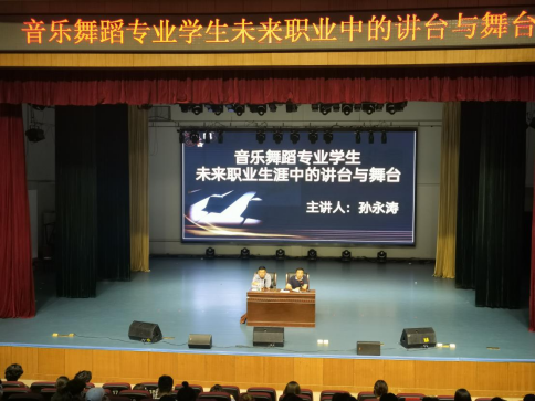 孙校长首先对音乐舞蹈学院的盛情邀请表示了感谢,接着从职业分析入手,一体两翼地阐述了“舞台”和“讲台”的含义,然后从“讲台”一词出发,分析了不同教育对象下教师的角色,以及需要良好的奉献精神、扎实的专业技能,同时也指出:不同的教育对象需要关注不同的教育目的、采取不同的教育方法,分清主次;其次,他再从“舞台”一词出发,阐述了对于选择了舞台的人来说,要求会更高:不仅要求声音形象俱佳,也需要更好的专业水平和综合素养,更是要在激烈的竞争中充分把握“合适的机会”才能绽放光彩!