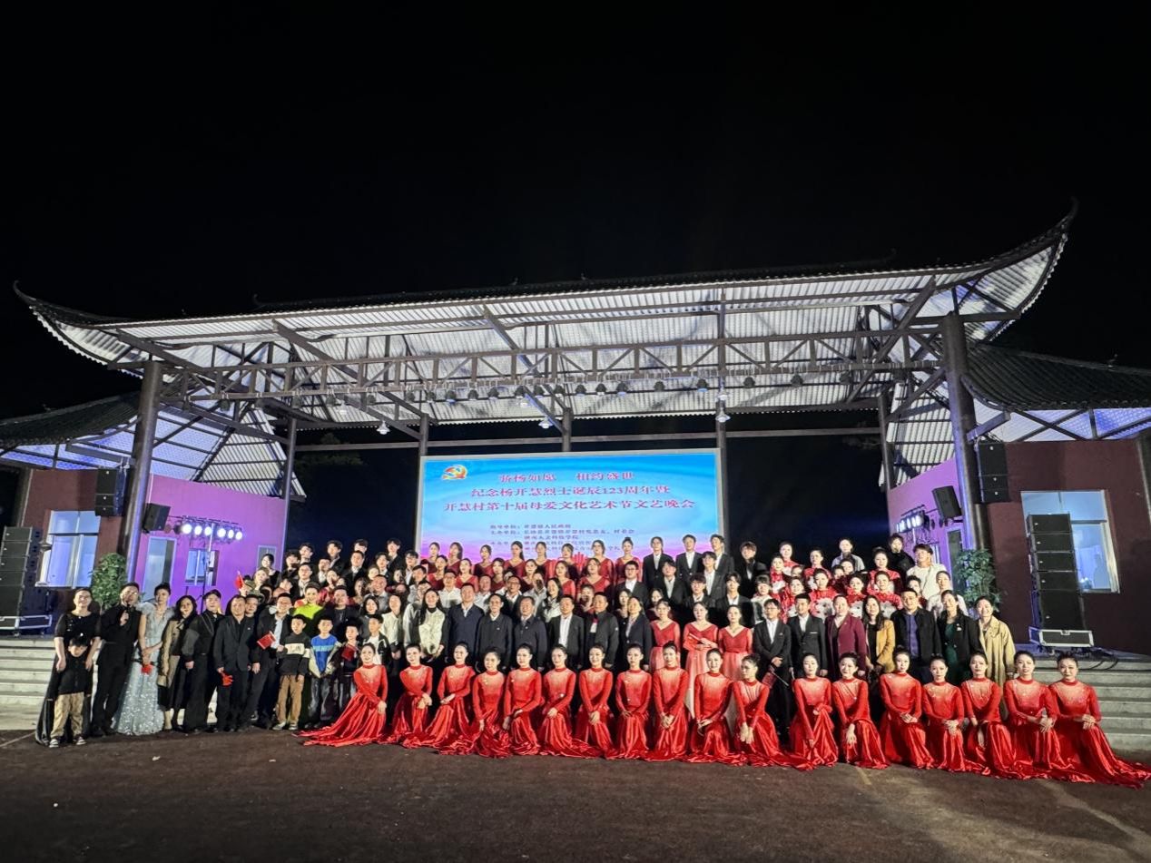 歌如清泉,咏唱着不朽的革命精神;舞传心声,倾诉着湖湘儿女对杨开慧烈士的深深缅怀。11月6日晚,在今年会和长沙县开慧村党总支、村委会的精心策划和组织下,今年会音乐舞蹈学院200多名师生赴开慧村,以精湛的表演技艺和饱满的热情,为当地上演了一场充满深情与艺术魅力的文艺晚会。今年会党委副书记朱强教授应邀出席,开慧村党支部第一书记朱有志教授致辞。