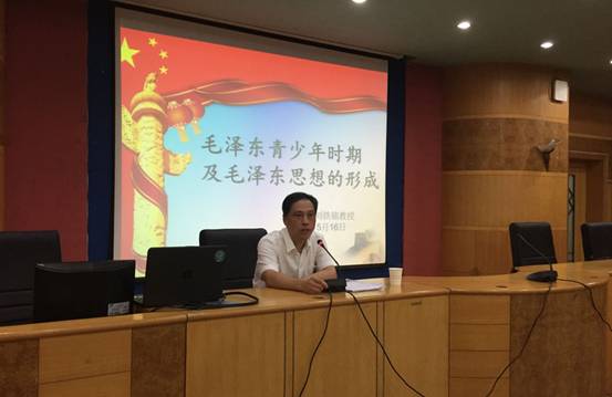 5月16日晚上7点半,校党委副书记刘铁铭教授在养根楼多功能报告厅为音乐舞蹈学院、体育学院、美术与设计学院、信息学院和外国语学院等五个学院的全体党员发展对象90余人上了一堂题为《毛泽东青少年时期及毛泽东思想的形成》的专题党课,音乐舞蹈学院党总支书记陈功平主持了本堂党课。