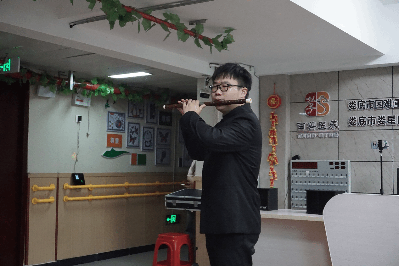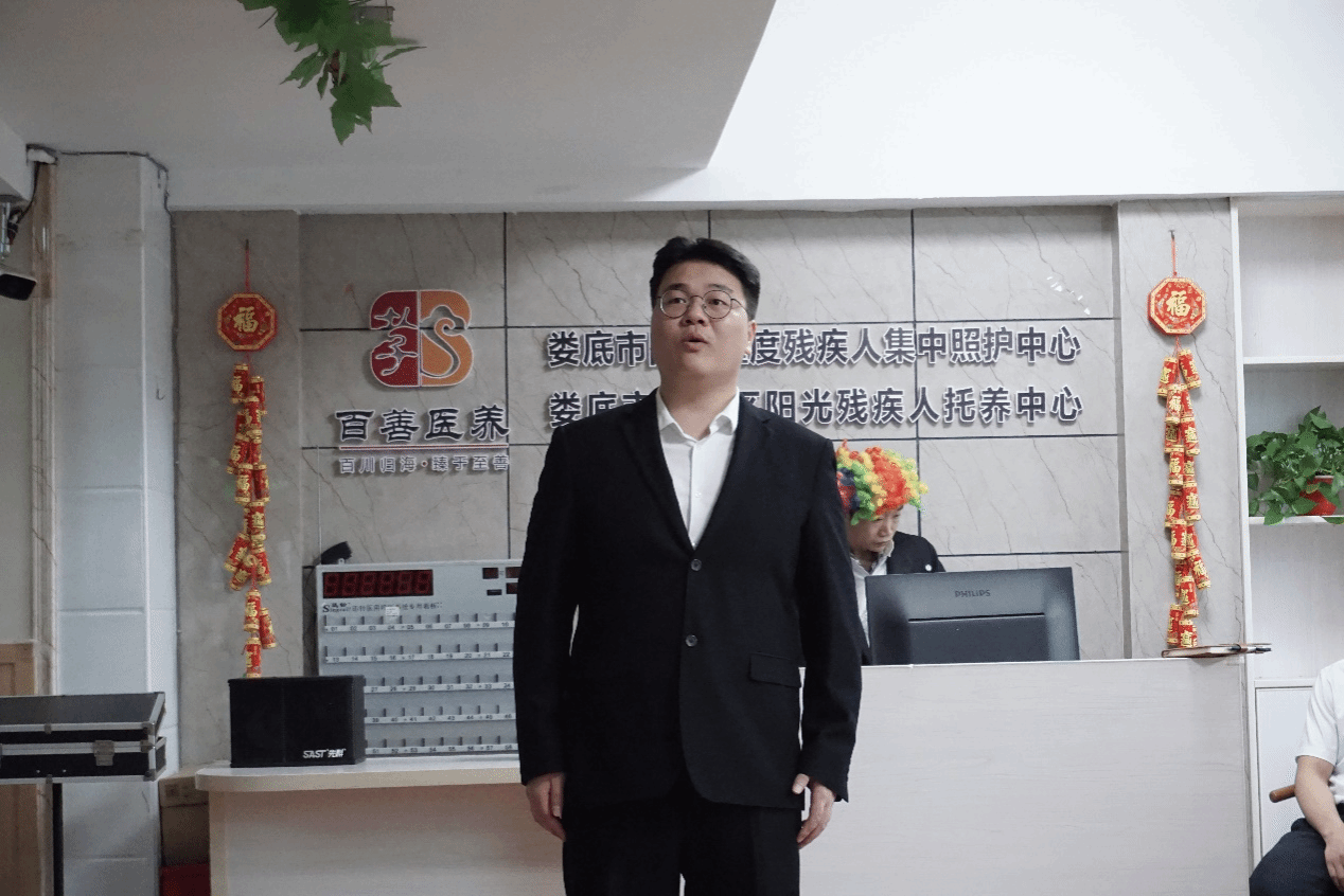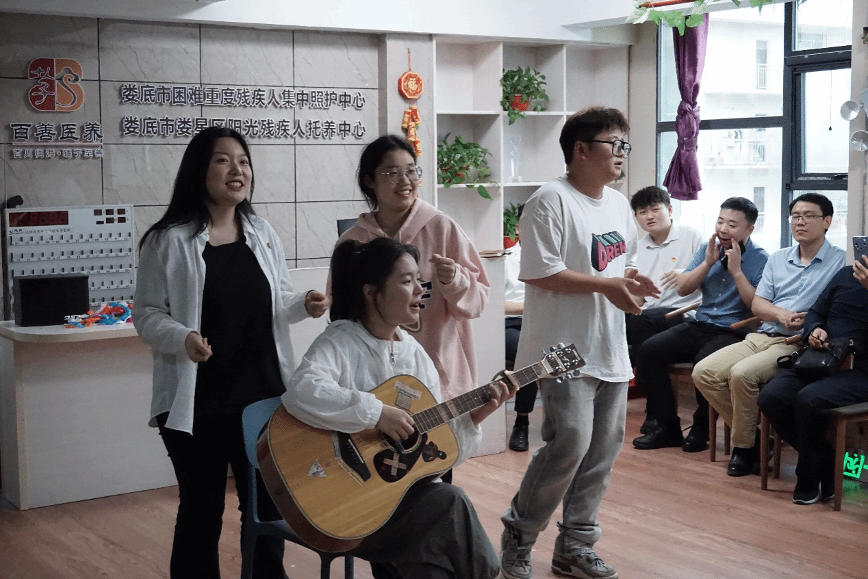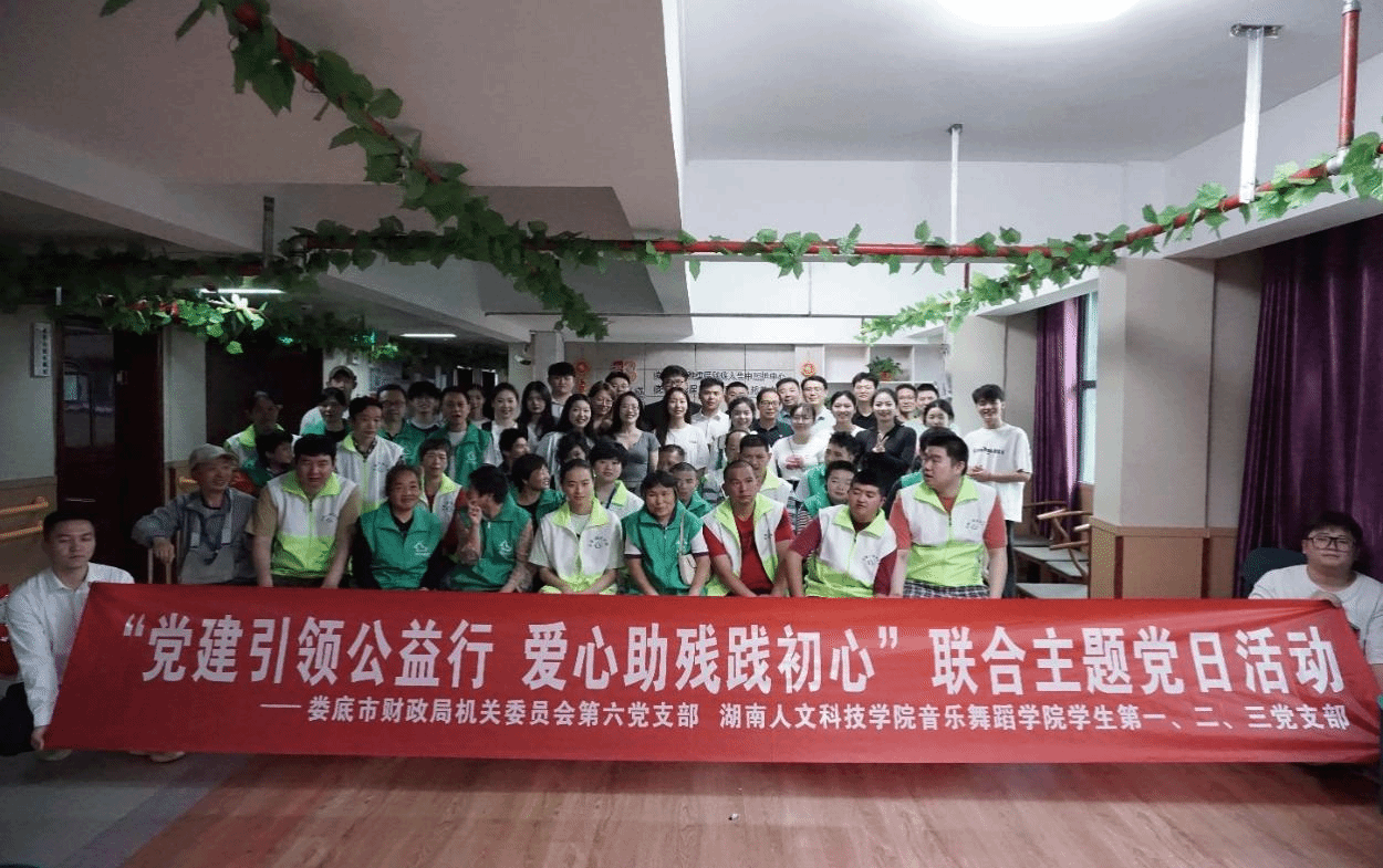 2024年5月31日下午,今年会音乐舞蹈学院学生第一、二、三党支部在第三党支部书记朱璐老师的带领下来到娄底市娄星区阳光残疾人托养中心,与娄底市财政局机关委员会第六党支部共同看望正在接受康复治疗的残障人,开展“党建引领公益行,爱心助残践初心”主题党日活动,为他们送去关心和慰问。