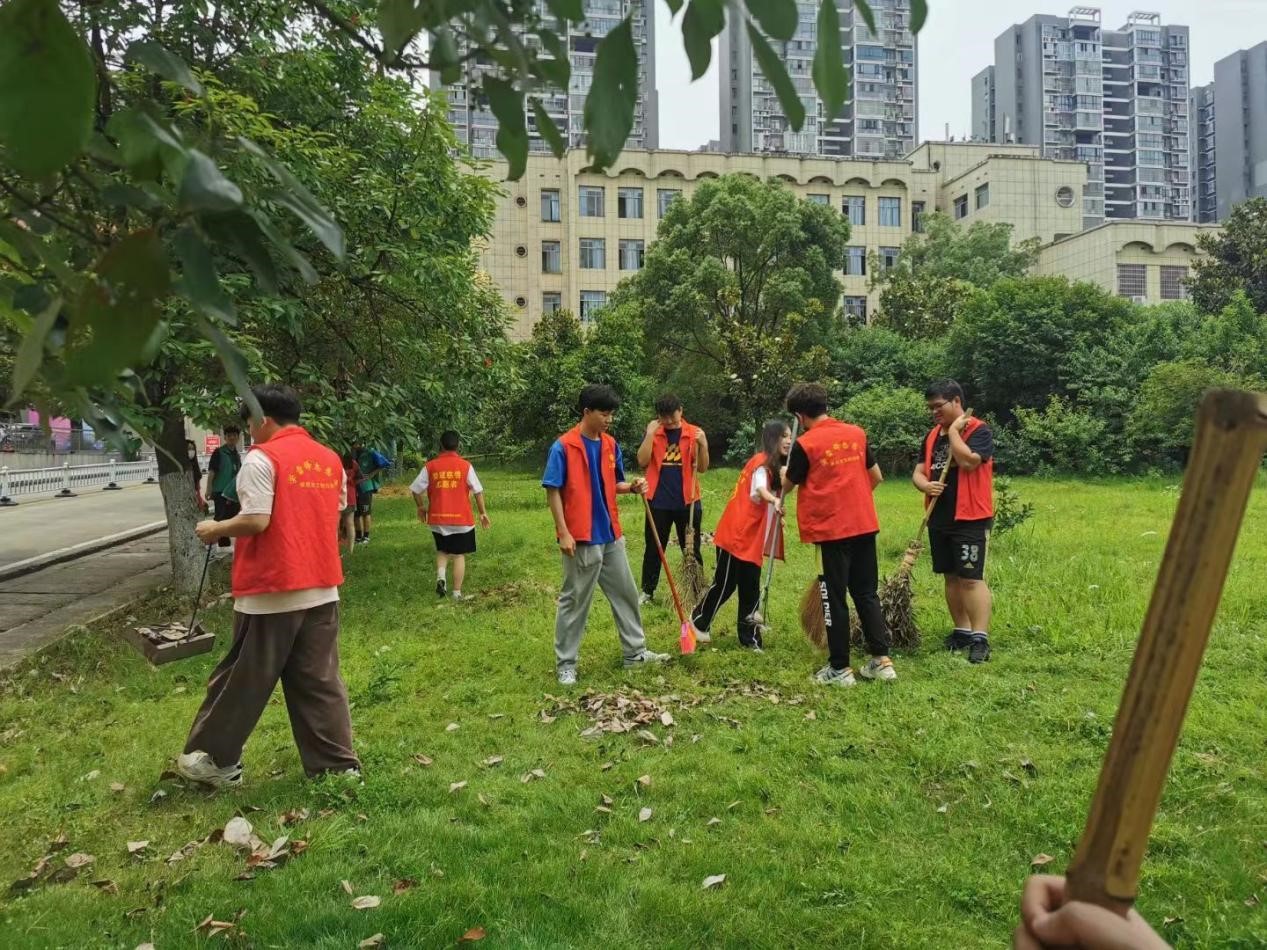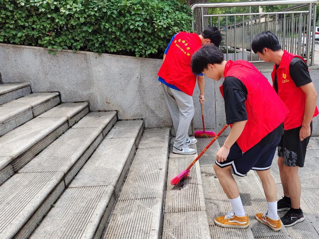 2022年6月10日星期五中午,音乐舞蹈学院学生会成员在逸夫楼前进行守望花田行动,为守护校园的贡献一份力量。