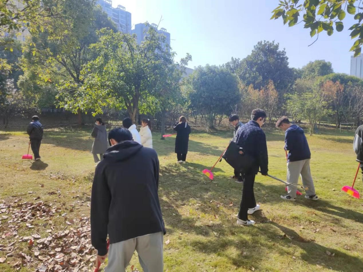2022322日下午,音乐舞蹈学院学生在逸夫楼周围开展活动。下午一点,同学们来到逸夫楼楼下领取劳动工具,集合完毕后来到责任区,开始清扫枯枝落叶。经过之前多次活动的结束,草地上的白色垃圾已经大大减少,但仍有枯枝落叶留在草地上。于是同学们拿着劳动工具,开始仔细清理草地上的垃圾,不放过任何一个有可能存在垃圾的死角。