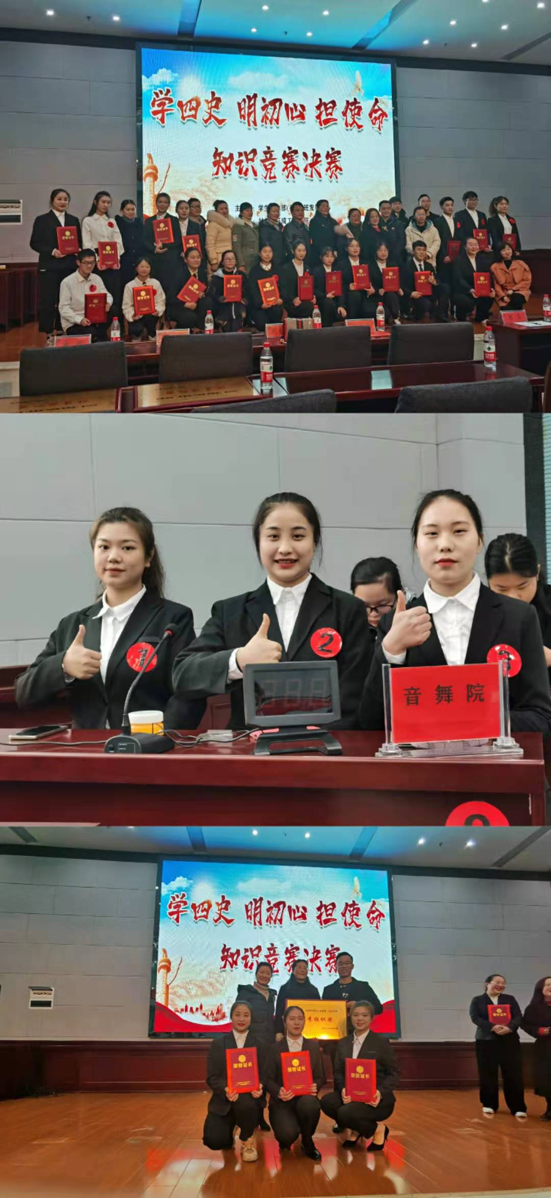 学校12月17日晚上在图书馆第二会议室举行“学四史 明初心 担使命”知识竞赛中。我院派出李红芳、梁蔚、陈宜佳三位同学参赛,最终在14各学院代表队中脱颖而出,获得“三等奖”和“优秀组织奖”。本次比赛旨在引导广大学生群体知史爱党、知史爱国,增强学生的社会责任感和历史使命感,在新时代发扬党的光荣传统、优良作风。