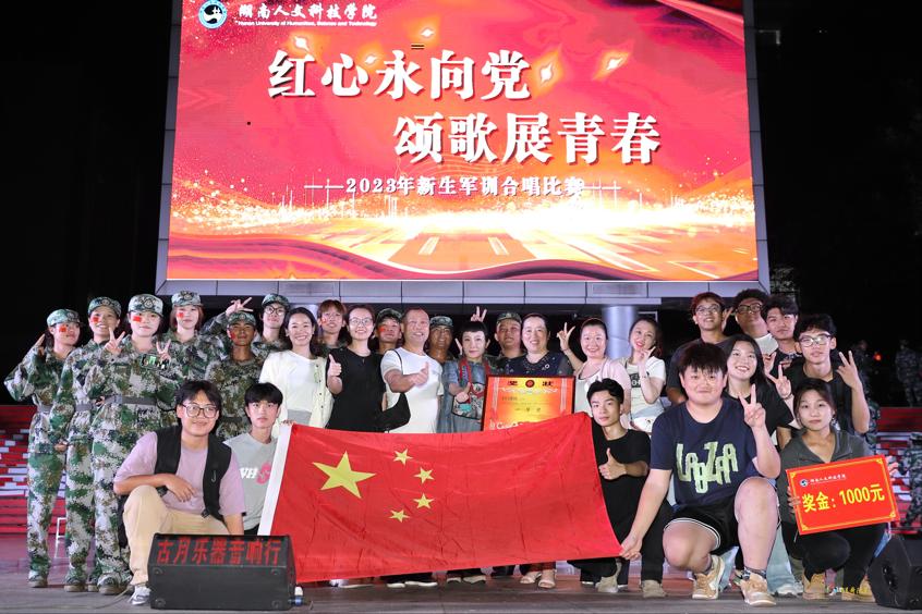 音乐舞蹈学院党总支书记刘纲华,党总支副书记邓莉立、舞蹈教研室主任高洁老师及全体辅导员一起出席并观看演出,声乐教研室主任杨鉴老师,康晓丹教授,谭以珂老师担任此次大赛的评委。我院演唱的歌曲《迎风飘扬的旗》在比赛场上大放光彩,优美的旋律和激昂的歌声无一不让在场师生心潮澎湃。由高洁老师指导的舞蹈《一条大河》更是将现场氛围推向高潮,博得阵阵掌声,展现出拼搏进取、昂扬向上的精神风貌。我院2023级新生在这次比赛中用歌声和旋律唱出新时代青年对党、对祖国、对社会主义的深厚感情,歌声催人奋进,气势振奋人心。经过激烈角逐,我院在本次新生军训红歌比赛中荣获一等奖。大赛最后,在全场师生齐唱校歌《梦想飞翔》的悠扬歌声中,2023年新生军训红歌比赛圆满落幕。