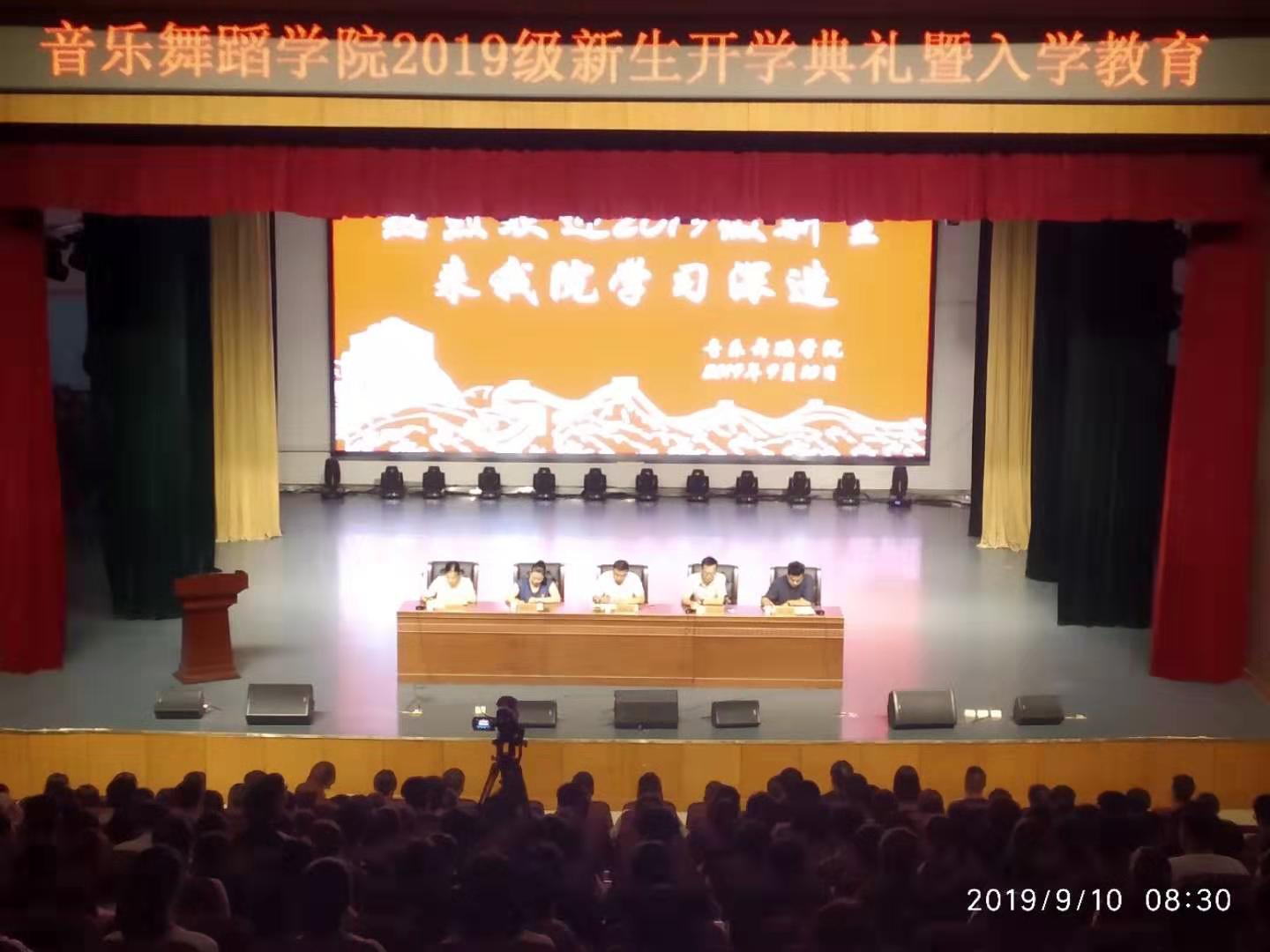 乘风远航新征程,春华秋实绘佳卷。2019年9月10日早上8点,在这个教师节来临之际,今年会音乐舞蹈学院组织新生在逸夫楼音乐厅召开19级新生开学典礼暨入学教育大会。音乐舞蹈学院院长谢坚强、党总支书记周邦春、副院长吴扎拉·涛、副院长刘利连和党总支副书记邓莉立出席本次大会。