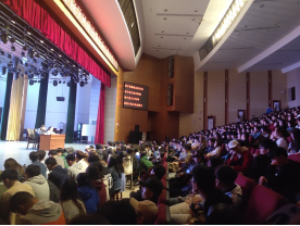 音乐舞蹈学院党总支书记周邦春、副书记邓莉立、全体辅导员及班主任、音舞院全体学生参加了本次大会。会议由音乐舞蹈学院副书记邓莉立主持,首先邓书记表明本次大会的目的与要求,并对本学期以来的学生工作做了总结,本次全体学生大会是音乐舞蹈学院学风建设的重要环节,目的是对学生教学、管理、服务等各方面进一步规范和完善,为进一步优化学习氛围、提高学习主动性奠定良好的基础。邓书记强调了以下几点:第一、严格请假制度。除特殊情况外,不允许代请假。第二、严查晚归、未归、校外租房,周末将对宿舍进行不定期检查。严查旷课、迟到、早退,一天一公布,一周一统计。累计旷课达6节,班主任应谈话教育。第三、强调禁摩要求。第四、对寝室内务、卫生问题和寝室安全做出明确要求。会议中,全体同学认真聆听,井然有序。邓书记对近期学生学习生活中出现的问题在现场做了针对性的强调,希望同学们增强自主学习能力,在生活上要严格要求自己,遵守学校的规章制度,学校不允许的坚决不做。