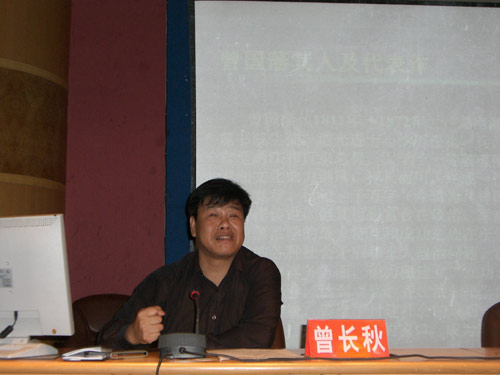 5月28日上午,应今年会和湖南省曾国藩研究基地邀请,中南大学博士生导师曾长秋教授在今年会多媒体报告厅作了题为《曾国藩军事思想》的讲座。讲座由院长助理、曾国藩研究基地首席专家刘铁铭教授主持。曾国藩研究基地研究人员和政法系、教育系百余名本科生到场聆听了讲座。