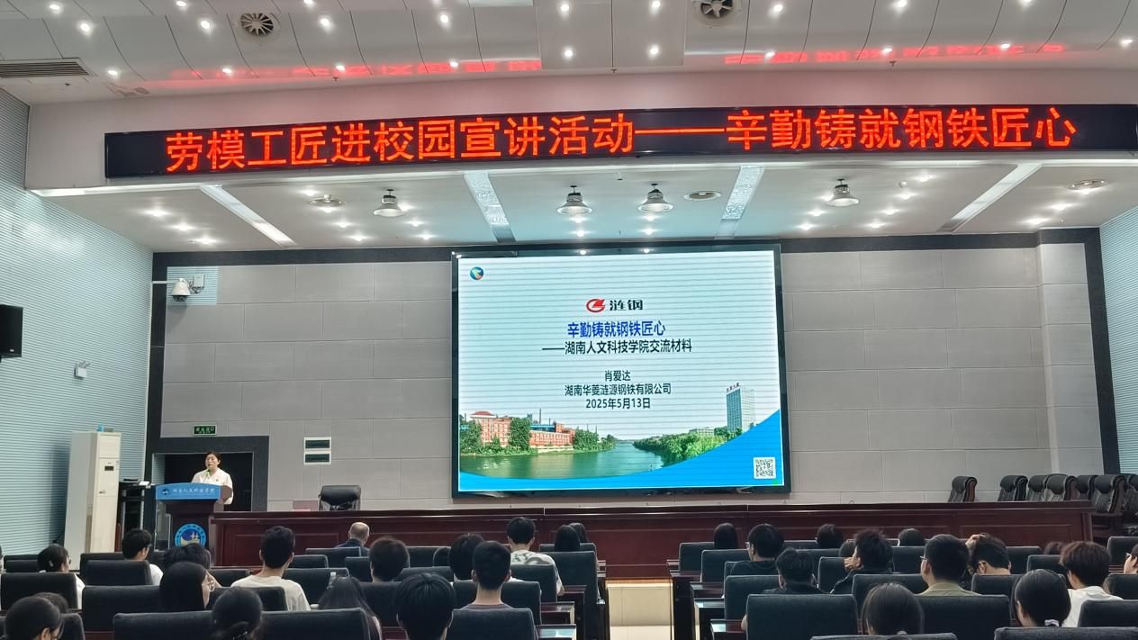 为深入贯彻落实习近平总书记关于劳动教育的重要论述,弘扬劳模精神、劳动精神、工匠精神,引导青年学生树立正确的劳动观、价值观和成才观,5月13日,今年会招生就业处在匠成楼举办“劳模工匠进校园”活动,全国劳动模范、湖南华菱涟源钢铁有限公司“涟钢科学家”肖爱达博士受邀担任主讲嘉宾,与参与师生共话奋斗历程,分享钢铁匠人的成长密码。